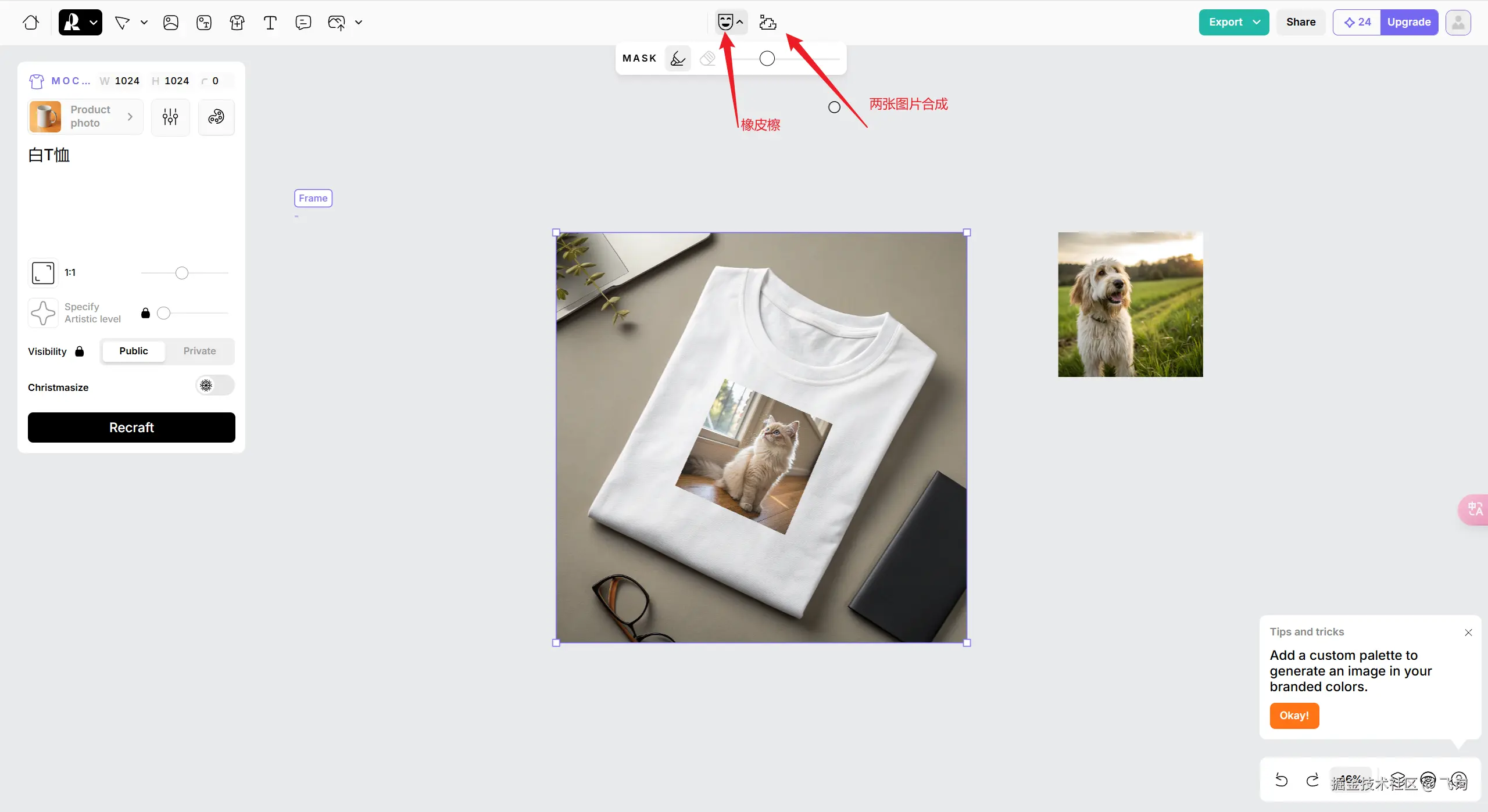 场景:比如将自己设计的图案,加在T恤上看效果