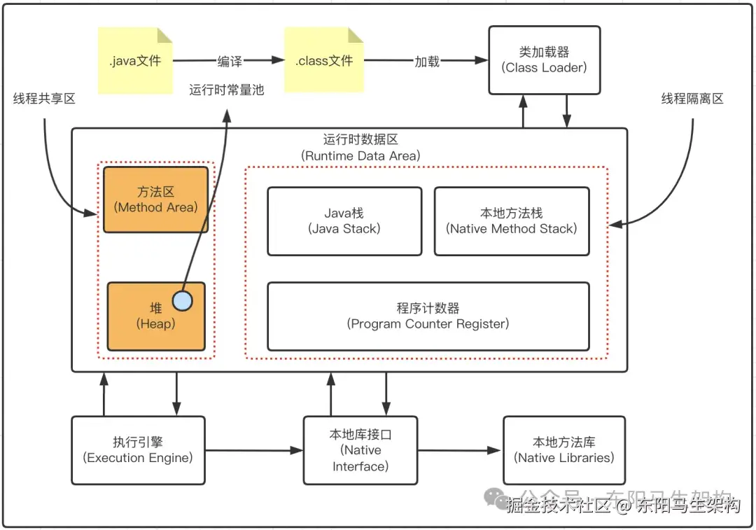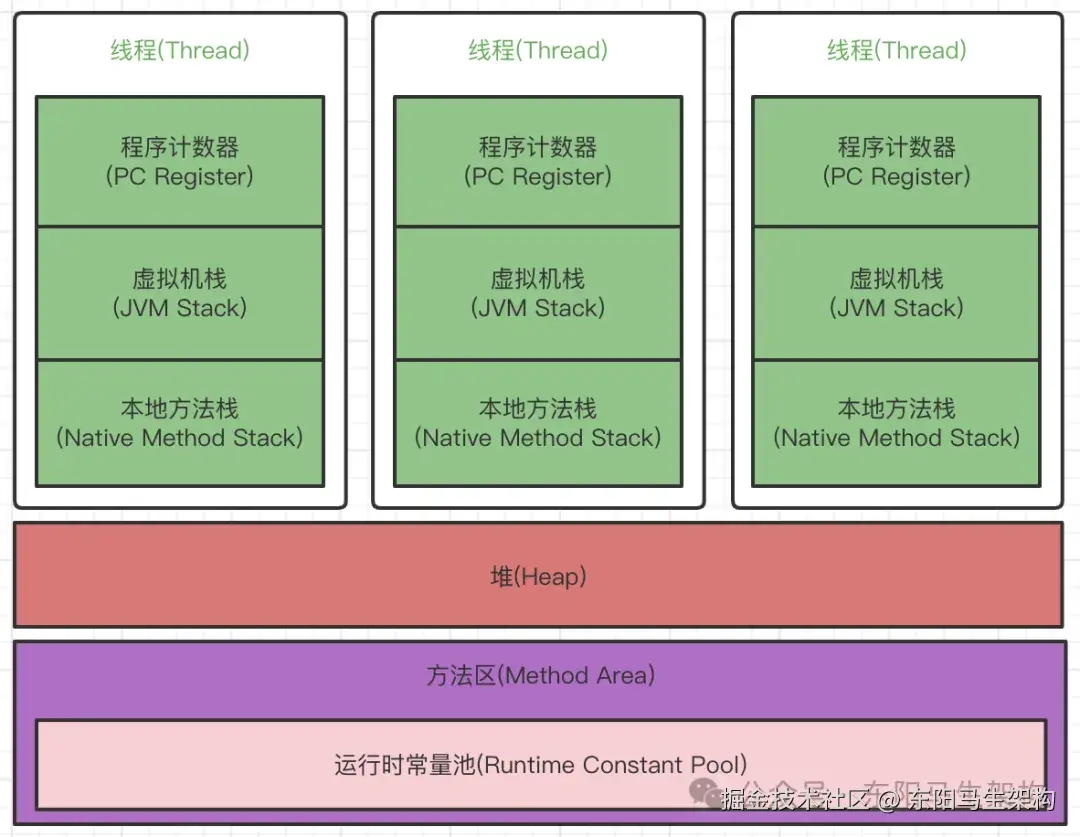 如果从分配内存的角度看,所有线程共享的Java堆中可以划分出多个线程私有的分配缓冲区(TLAB)。在Java堆中的这些线程私有的分配缓冲区(TLAB)可以提升对象分配效率,而将Java堆细分的目的就是为了更好地回收内存,或者更快地分配内存。