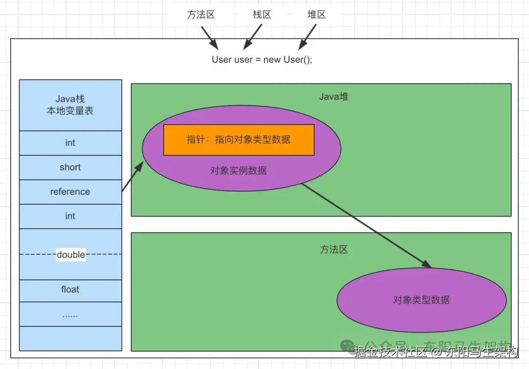 堆内存用来存储Java中的对象。无论是成员变量、局部变量、还是类变量,这些变量指向的对象都是存储在堆内存的。