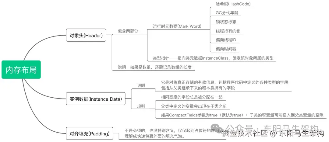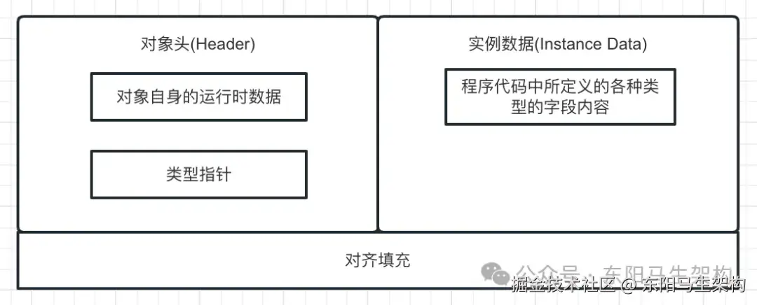 在HotSpot虚拟机中,对象在内存中存储的布局可以分为3块区域:对象头(Header)、实例数据(Instance Data)和对齐填充(Padding)。