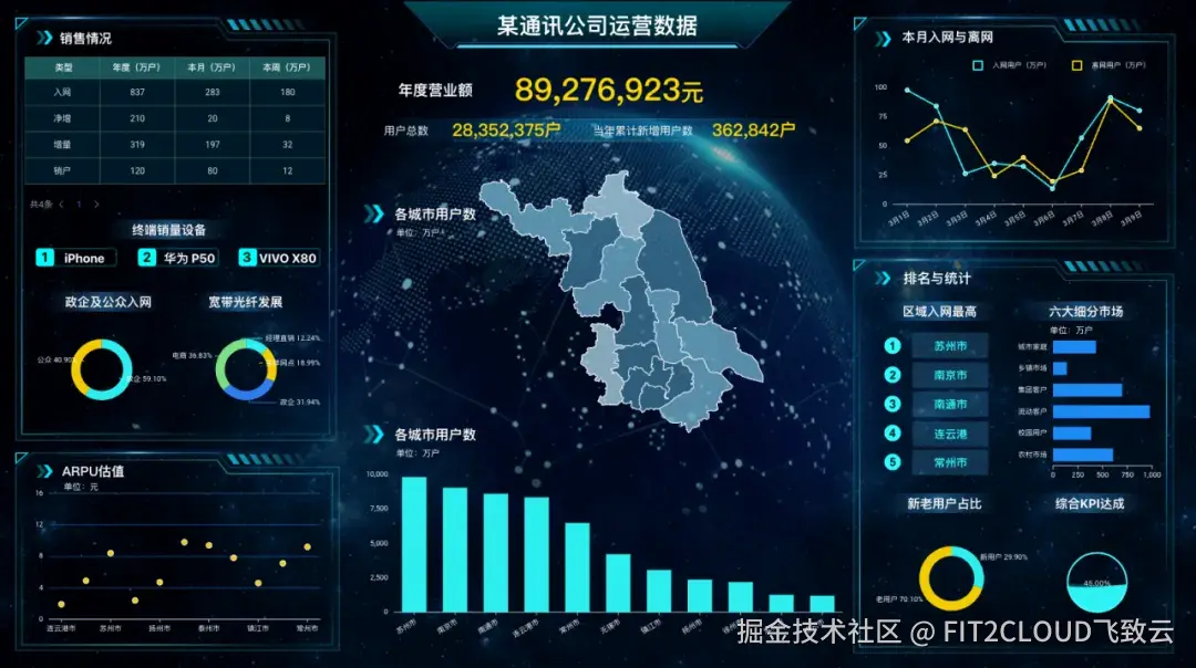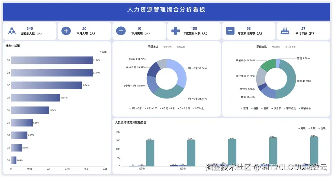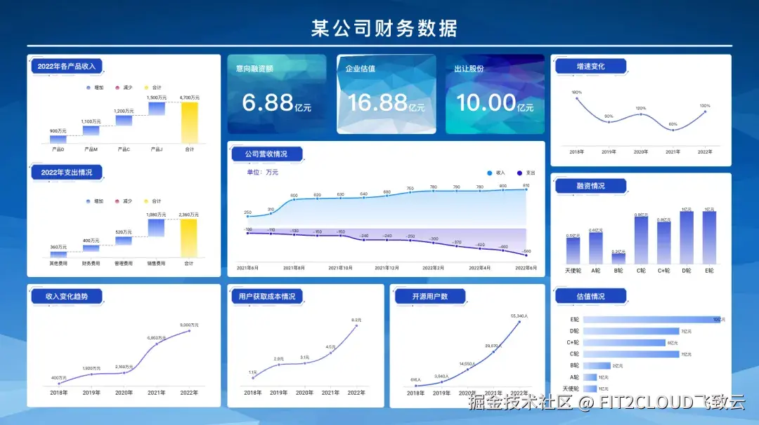 本期为大家推荐DataEase模板市场中8款精美的企业管理数据大屏模板。