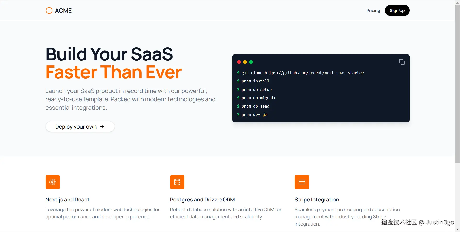 技术栈:Next.js、Postgres、Drizzle、Stripe 和 shadcn/ui
