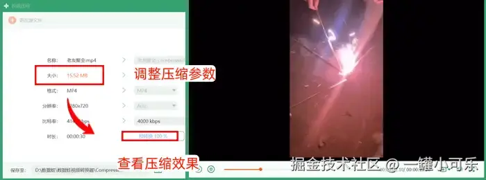 第三步:根据界面上提供的可调整的参数,调整压缩参数,点击【预览】选项,查看压缩效果,确认最终效果,然后点击【压缩】,等待视频压缩完成即可。