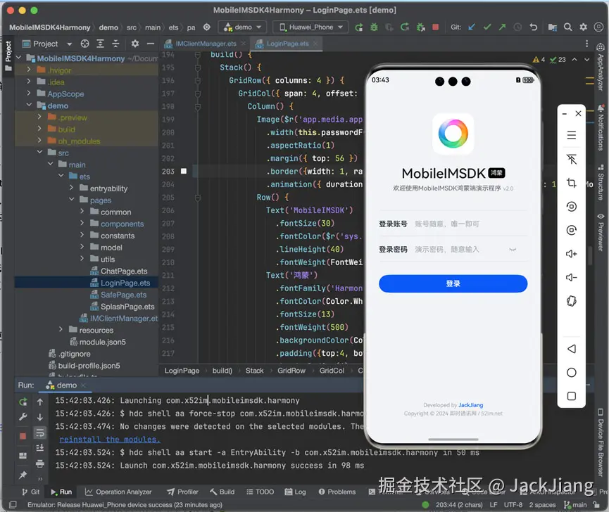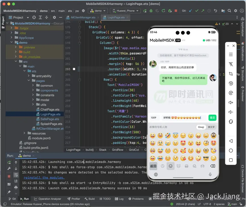 MobileIMSDK-鸿蒙端是一套基于鸿蒙Next(纯血鸿蒙)系统的IM即时通讯客户端库: