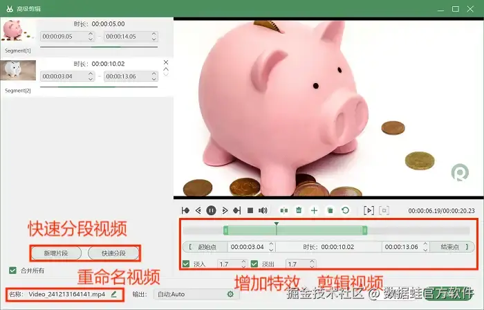 步骤3: 录制结束后,软件会自动弹出预览页面,我们可以在预览页面中找到 “高级剪辑” 工具,对视频进行后期编辑操作。如快速分段视频、重命名视频等。