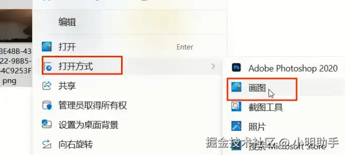 第一步: 选中图片之后,右键点击图片,选择【画图】为打开方式。