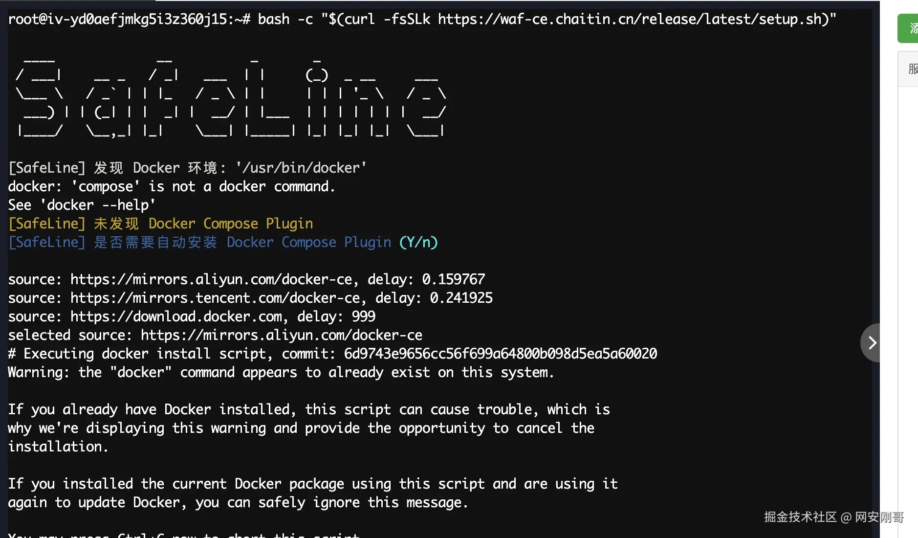 直接使用雷池的安装命令