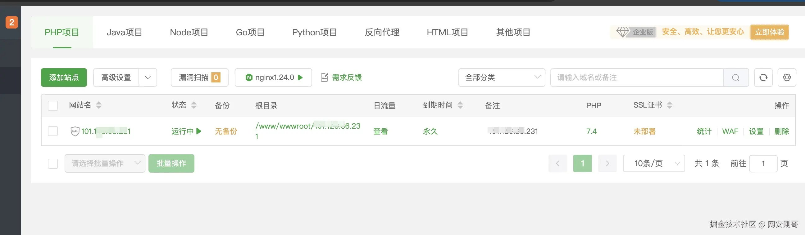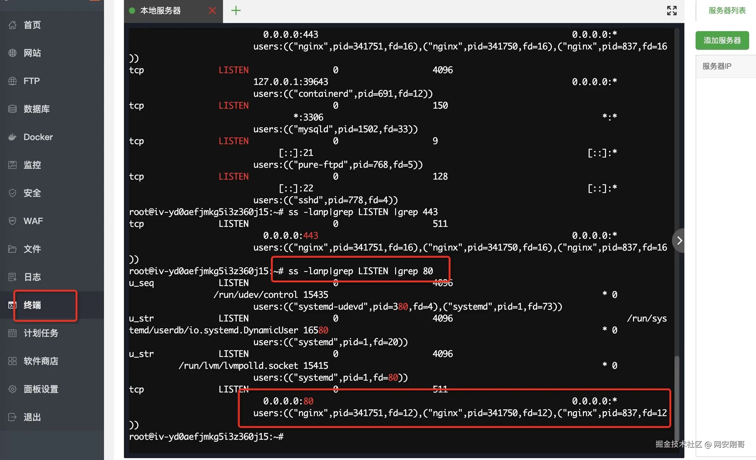 面板搭建的网站已经占用了机器的80端口,并且开启了80的监听