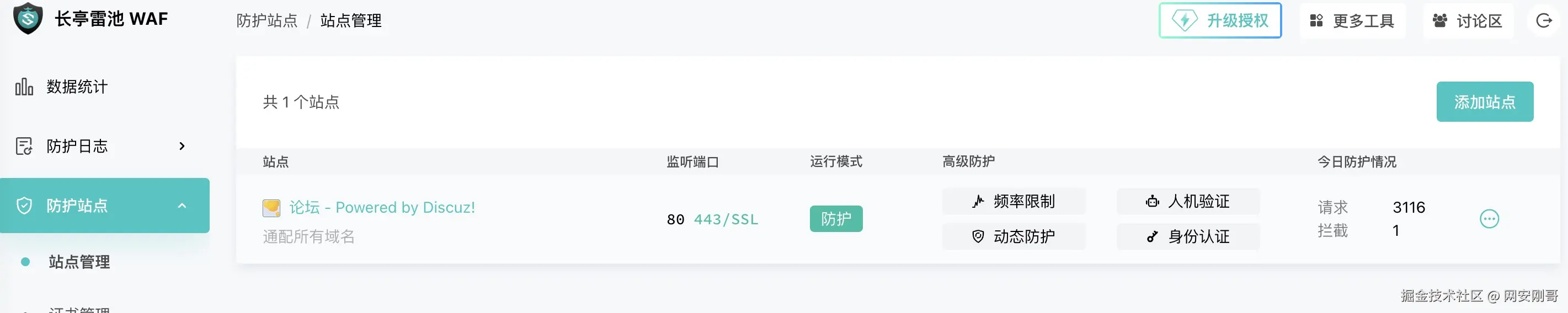 出现如下图,雷池的站点就配置完成了