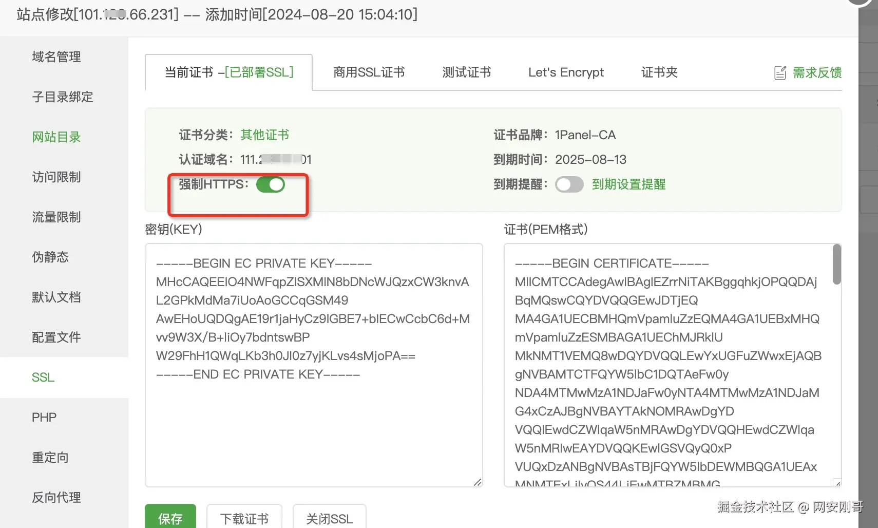 如果宝塔的站点开启了强制https