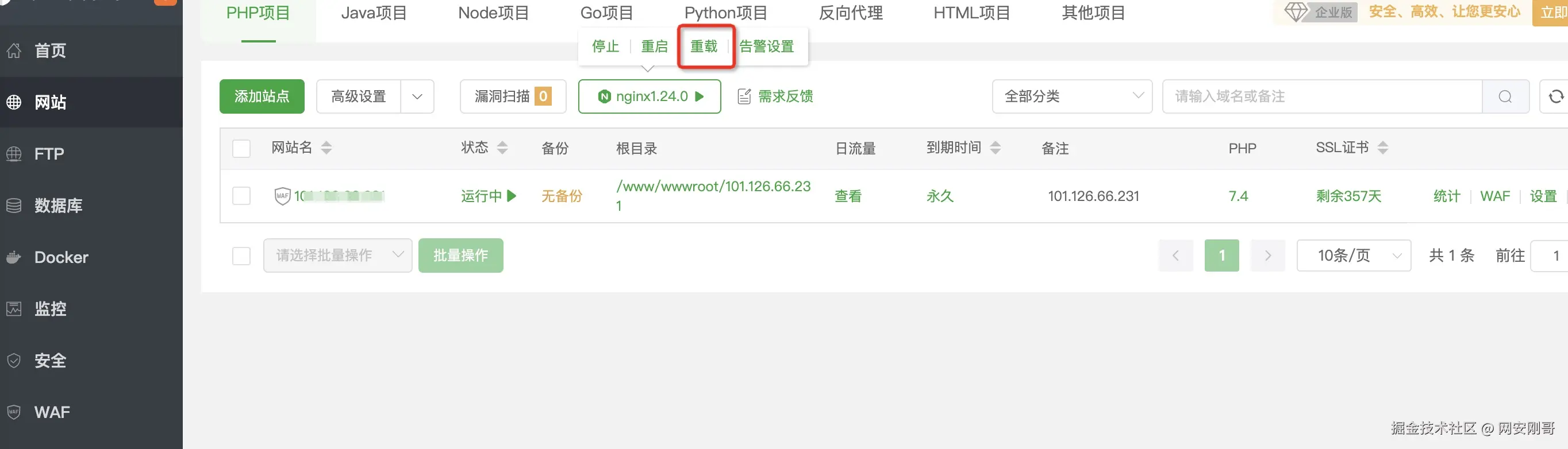 在网站管理上,许多用户都是通过宝塔面板进行管理,宝塔面板的Nginx默认监听端口为80和443,这就导致共存部署时雷池WAF默认无法监听80和443端口,那怎么办呢?