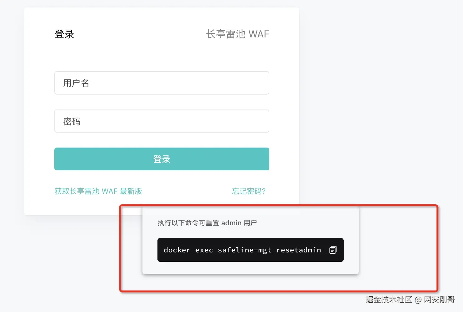把雷池的重置密码命令输入,可以看到新的账号密码