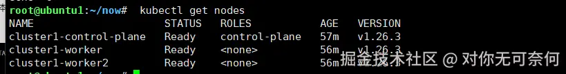 使用kind搭建了一个1.26.3的 k8s集群,两个work节点。这里可以随意。只要是k8s环境即可: