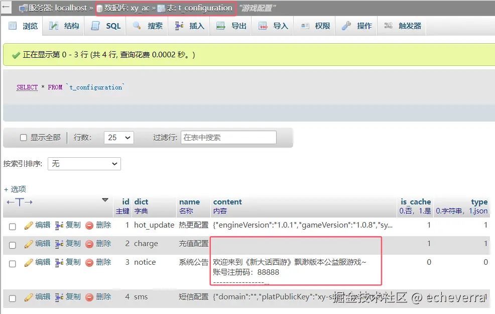 游戏公告和修改都在数据库xy_ac表t_configuration,公告为id为3的content字段值,充值为id为2的content字段值,建议直接清空,否则游戏内点击充值还会跳转。两个配置都需重启游戏服务后生效。