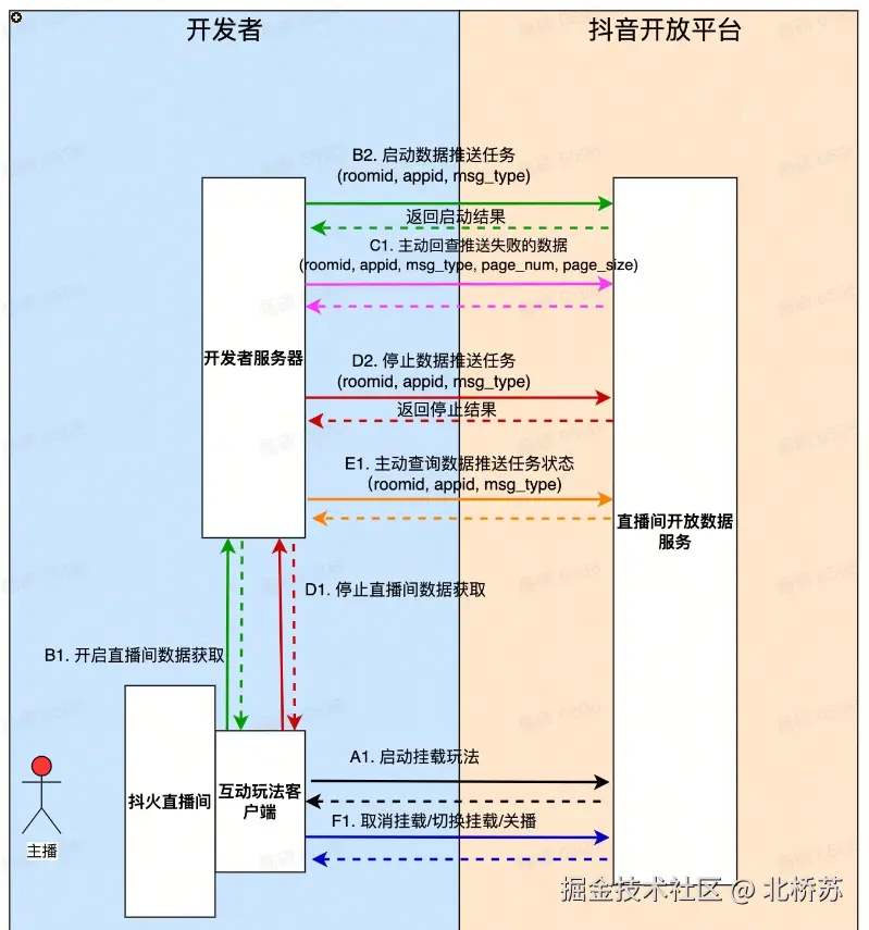 调用任务启动后,直播间数据才会同步推送给开发者服务器,注意:不同类型的数据需要启动不同的任务单独监听,比如礼物数据单独启动一个,评论数据单独启动一个,见文档的数据开发。