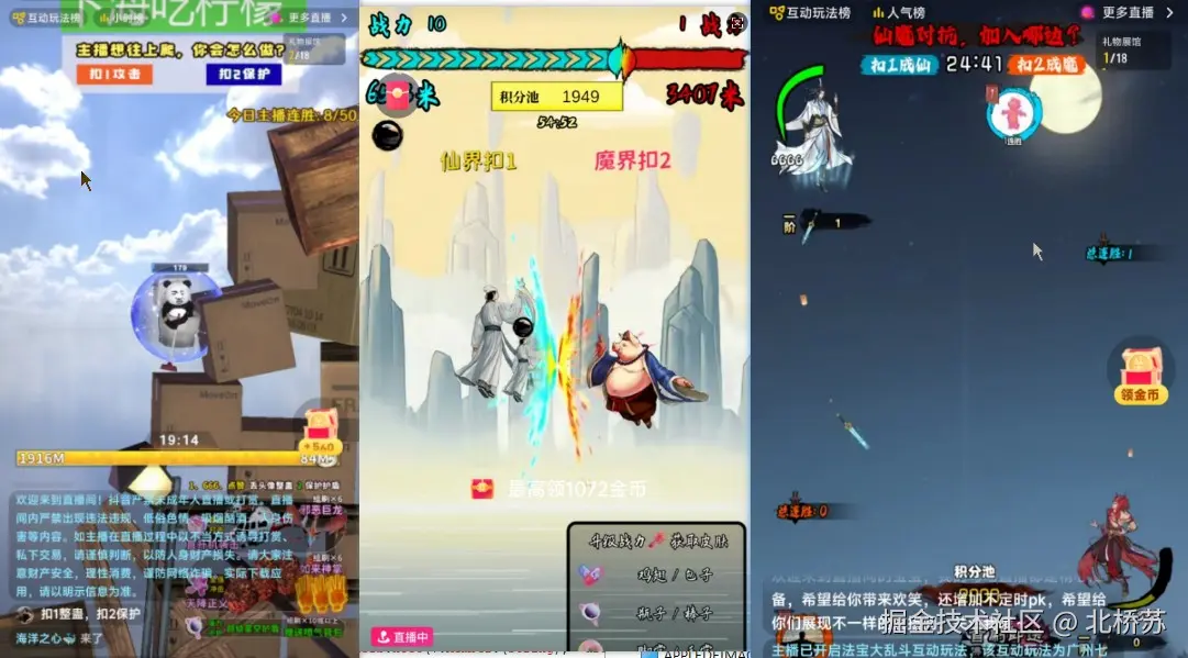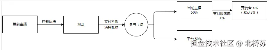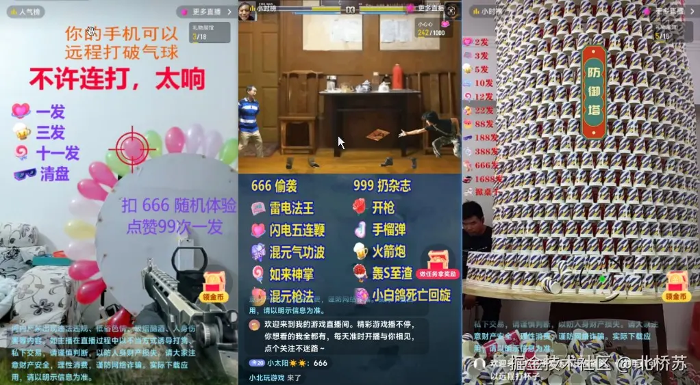 因为没有人出境和抓取数据等原因,开播的房间经常被封,虽然被封,但收益不错也屡禁不止,所以抖音干脆开放小玩法模块(个人猜想),更大程度实现主播、开发者、观众双收。我已知第三方平台有:咩播、阿比整蛊、青播,有机会我再聊聊关于这些平台软件的内部概况。