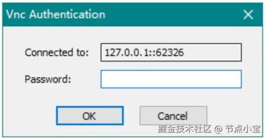 打开本地电脑的节点小宝软件,添加服务,选择<中转设备>,服务类型选择,输入远程电脑的IP和VNC端口,如192.168.1.100:5900,确认后,点击 即可连接,进入 VNC 登录界面.
