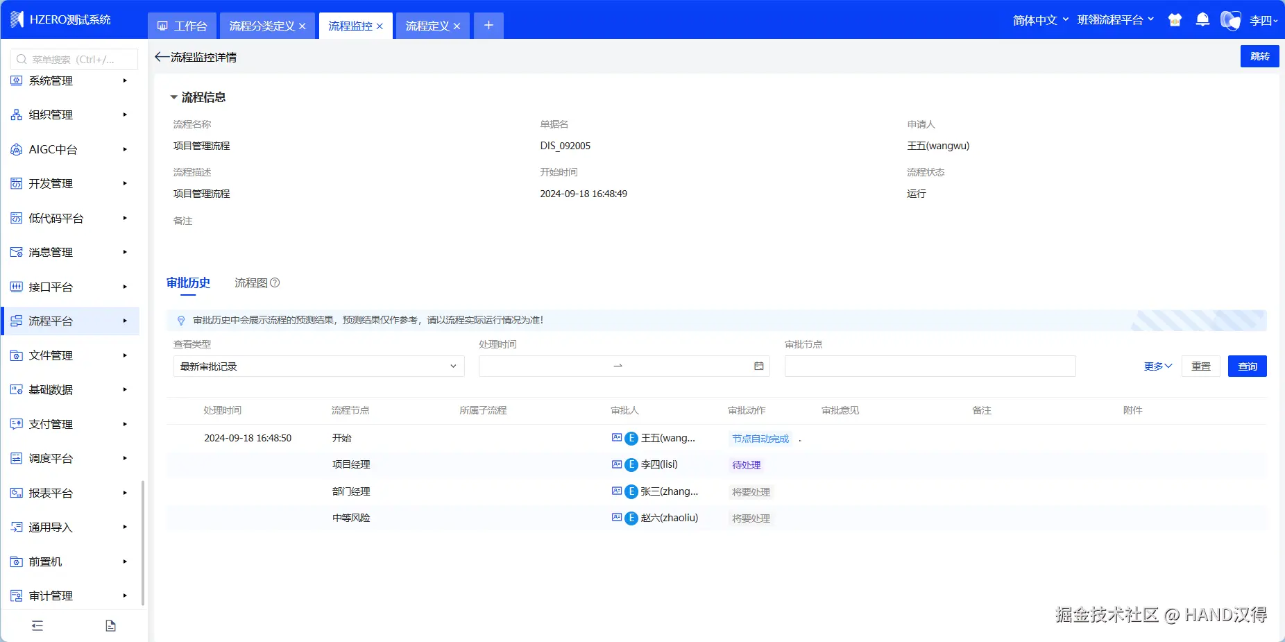 根据矩阵规则,获取到了中风险及以上类型下的审批人【赵六】。