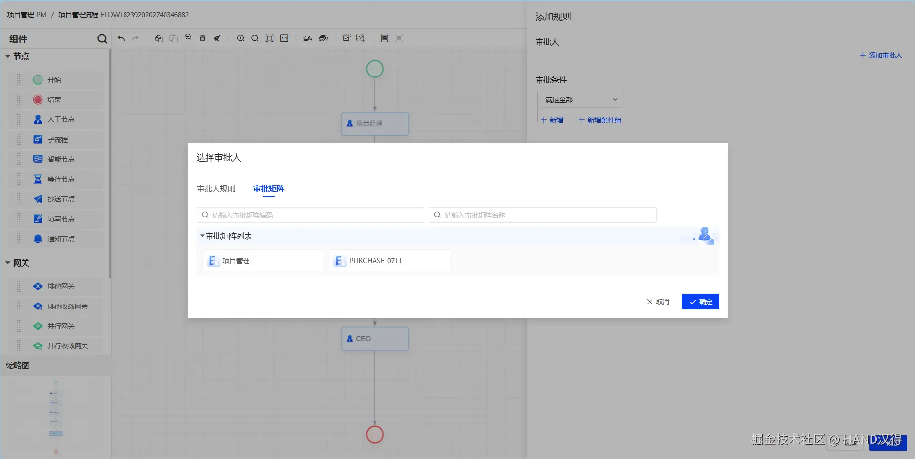 根据矩阵规则,所有矩阵规则均满足,获取到了各个规则下的审批人。