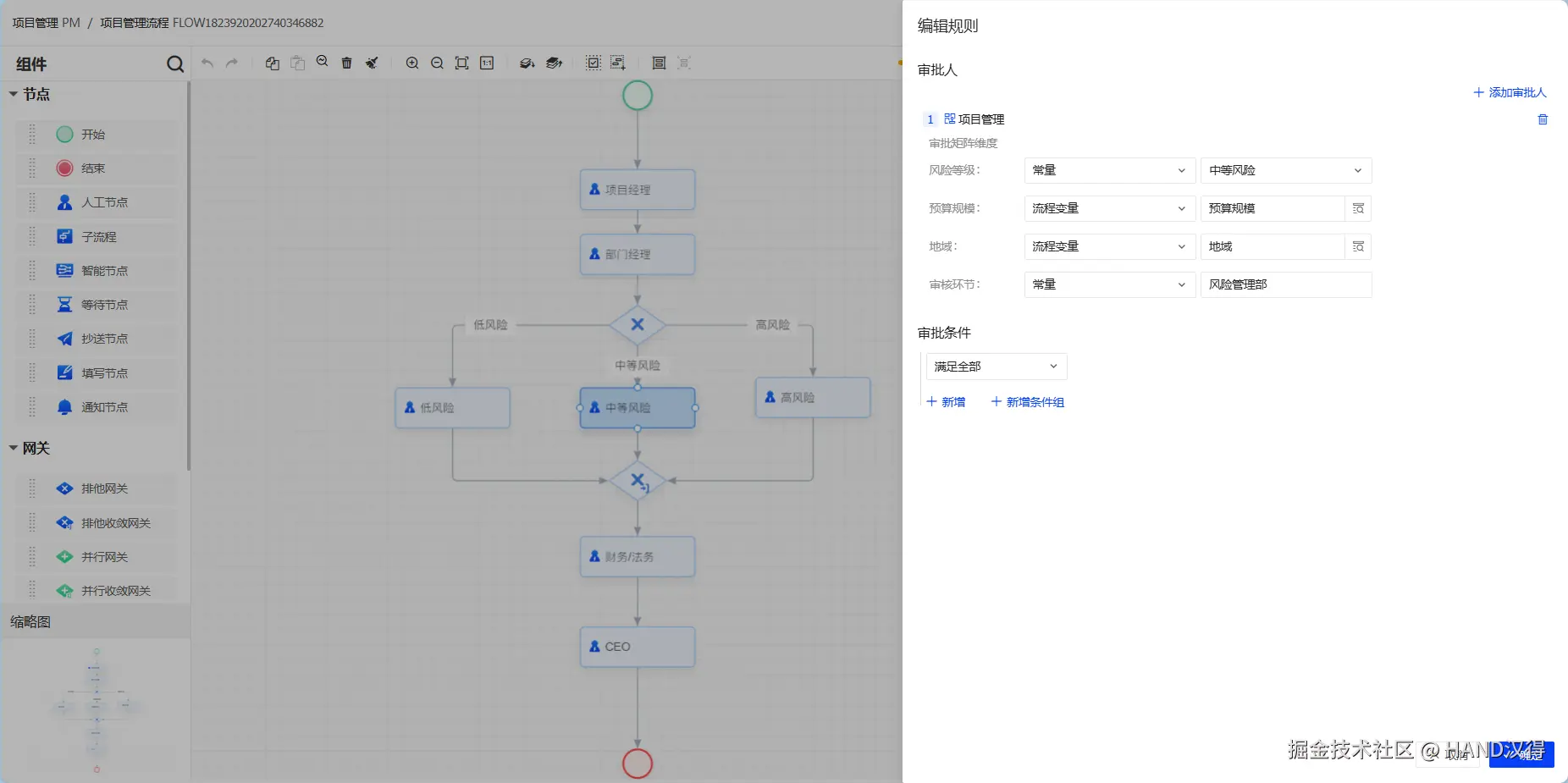需根据项目类型、风险等级、金额大小、部门、角色等各个维度进行判断审批人。