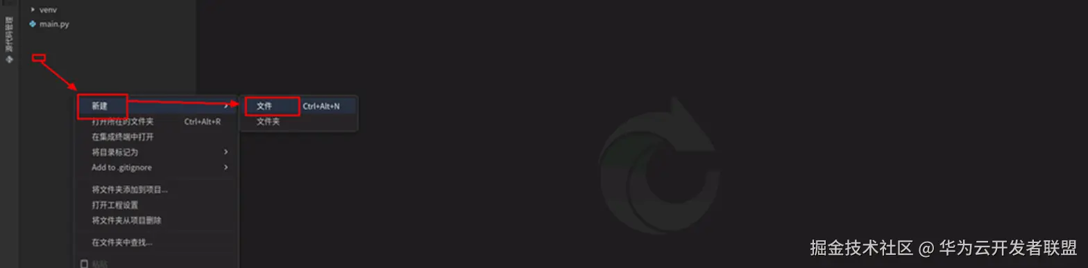 3. 在工程区域空白处单击鼠标右键,选择新建文件,文件名称设置为“api.py” 。