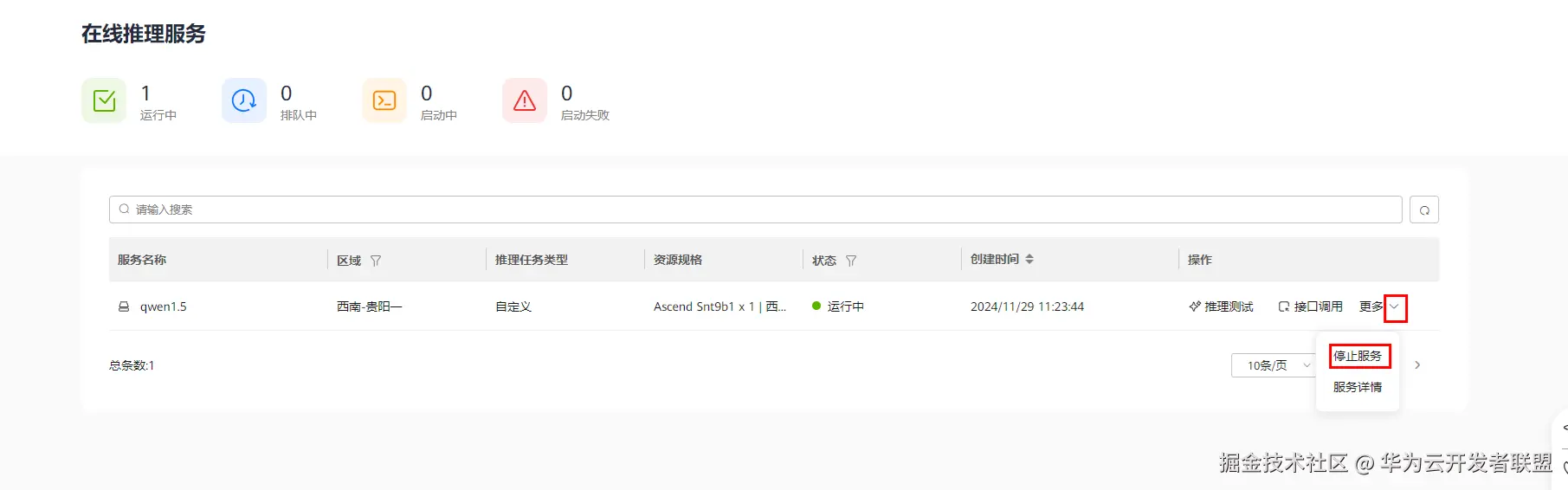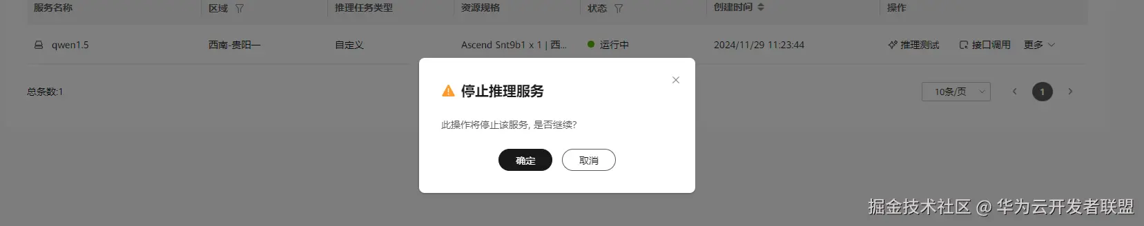 上面点击更多右边的向下的箭头,然后停止服务。会出现“停止推理服务”点击确定按钮。
