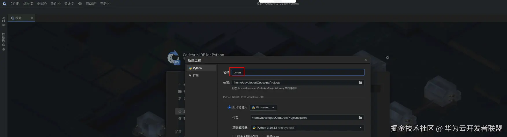 2. 打开窗口后,单击新建工程,名称可以自定义,如qwen。