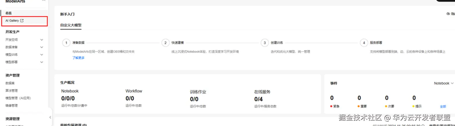 2. 点击“AI Gallery”,进入AI Gallery社区。