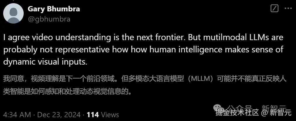 不过也有人说,视频理解的确是下一个前沿,但 MLLM 恐怕无法真正代表人类智能理解动态视觉信息的方式。