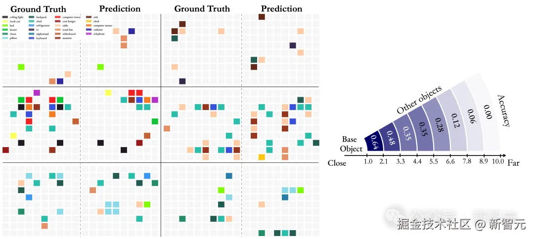 结果显示,模型在定位近距离物体时达到了 64% 的准确率,展示了强大的局部空间感知能力。