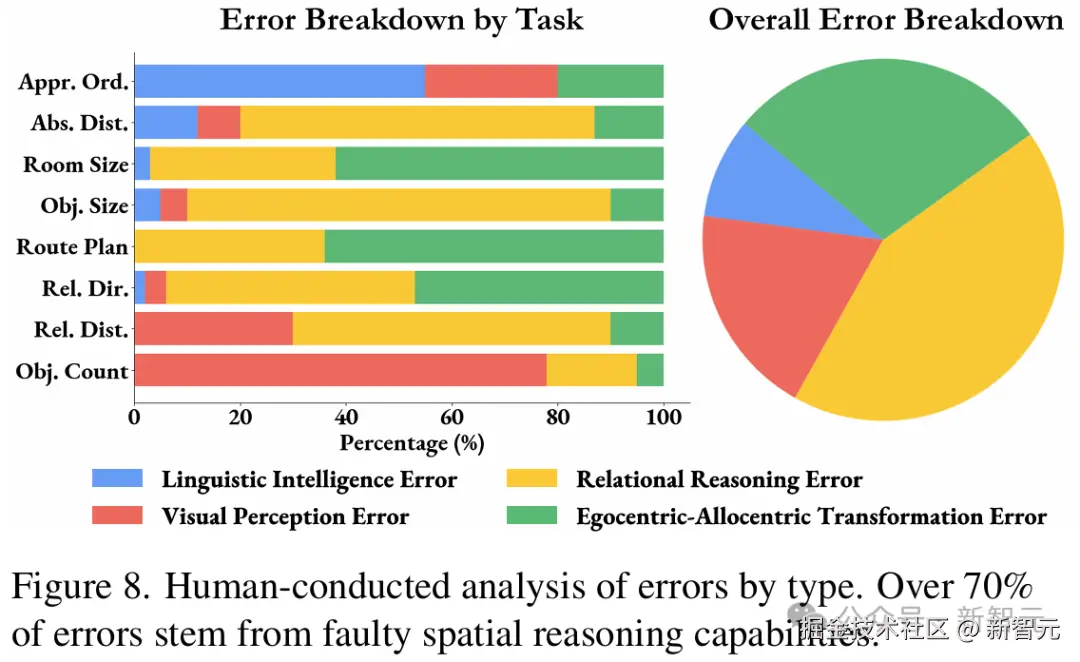图 7 显示,71% 的错误源于空间推理,特别是在理解距离、大小和方向等方面。