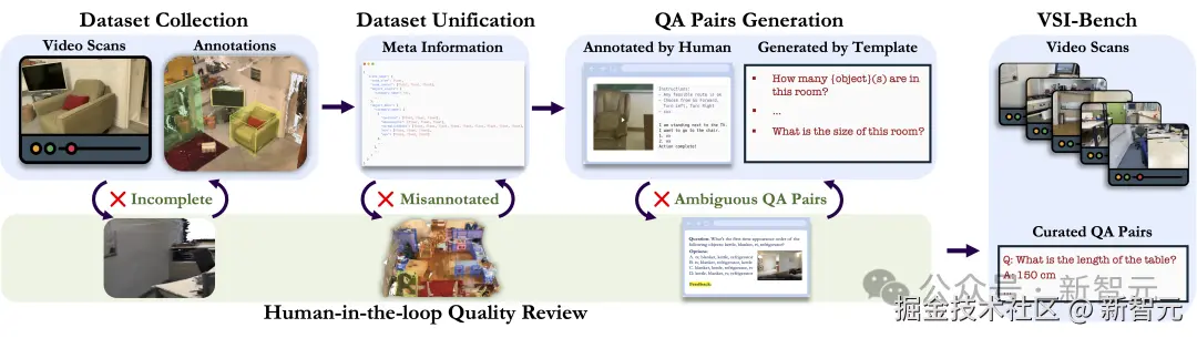 研究者开发了一套稳健的流水线来构建 VSI-Bench,以支持大规模生成高质量的问答对。