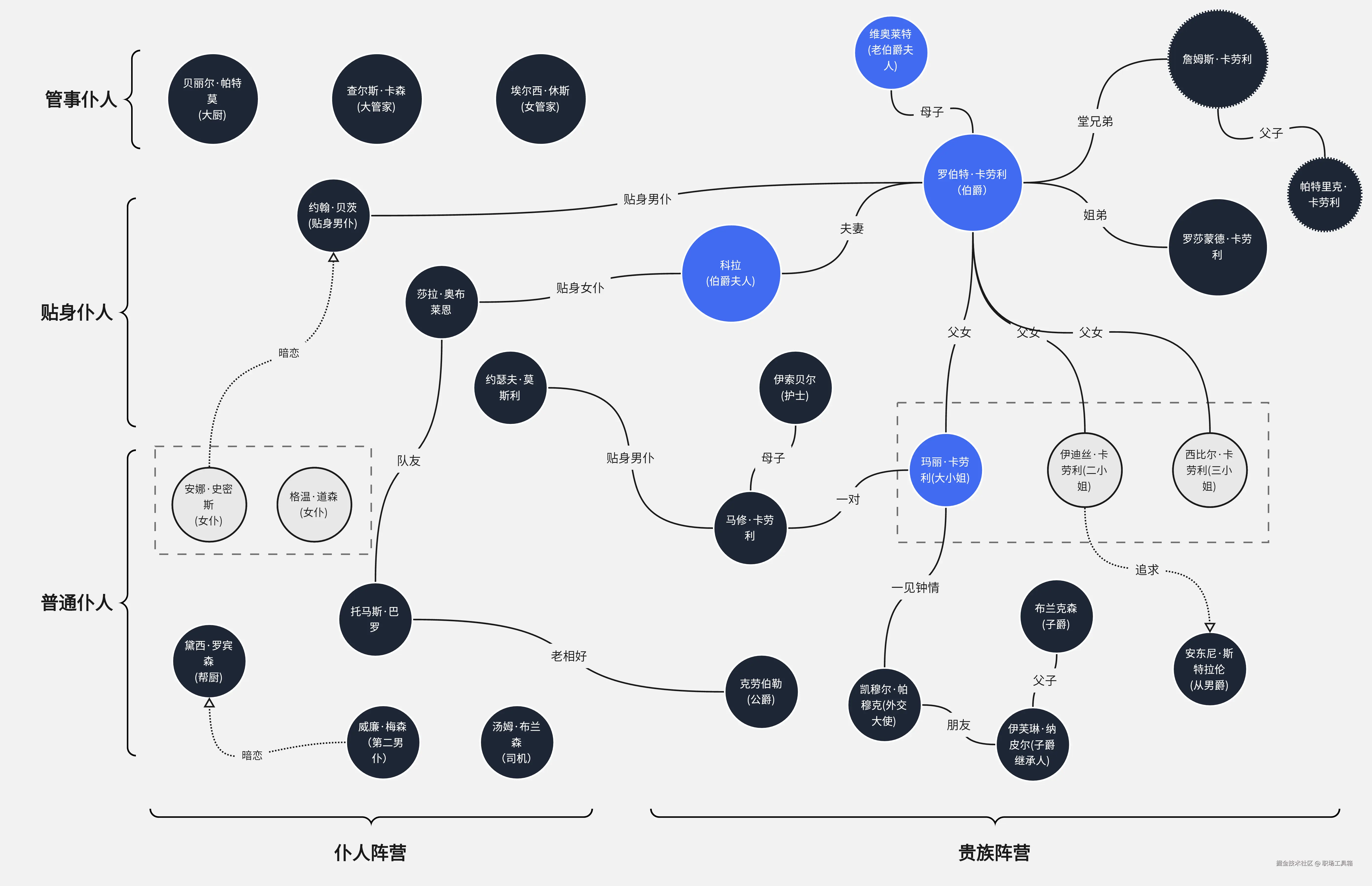 《唐顿庄园》第一季人物关系图模板细致勾勒了这部英剧中的贵族家庭与仆人之间的复杂关系。从家族继承到爱情纠葛,从权力斗争到社会等级,这张图谱为观众提供了一个清晰的框架,帮助他们理解剧中的每一个微妙互动和情节发展。