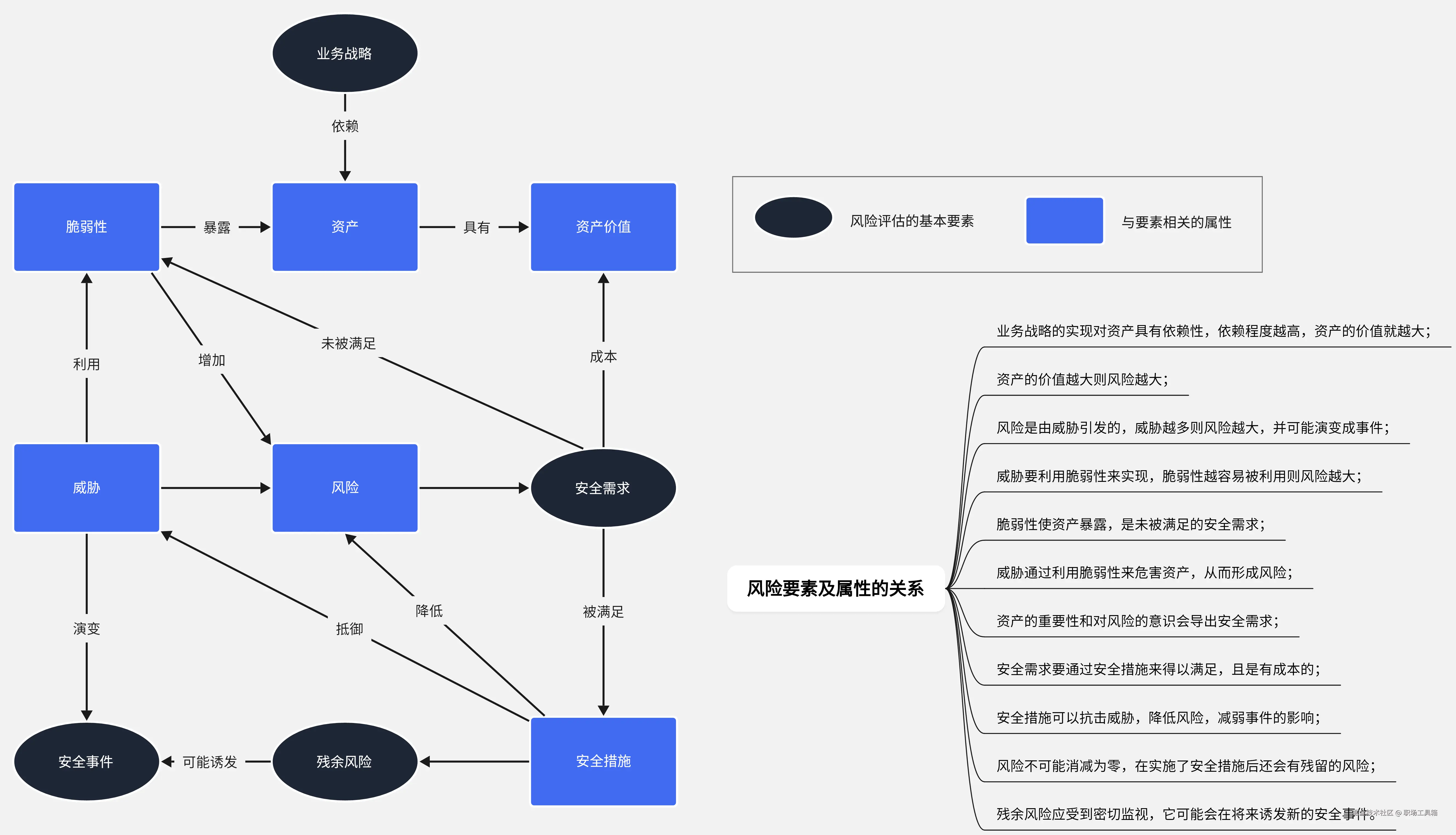 风险评估要素关系图模板为风险管理提供了一个清晰的框架。这张图谱展示了资产、威胁、脆弱性和安全措施等关键要素之间的关系,帮助企业和项目团队识别、评估和应对潜在风险。