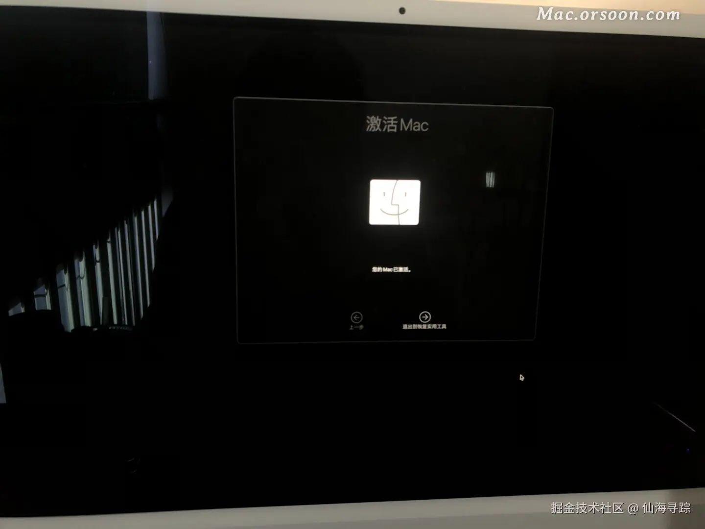 9、您的 Mac 将开始激活;在此期间,设备需要连接至互联网。待 Mac 激活后,请点按“退出到恢复实用工具”。