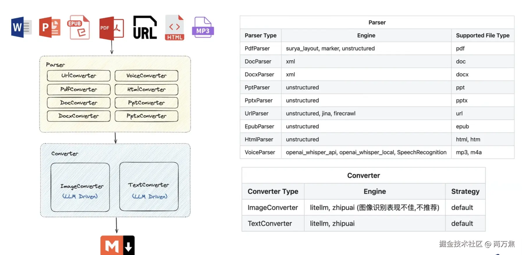 - E2M: 以把各种文件转成 Markdown 的工具,每种格式有专门的解析器和转换器,支持自定义配置