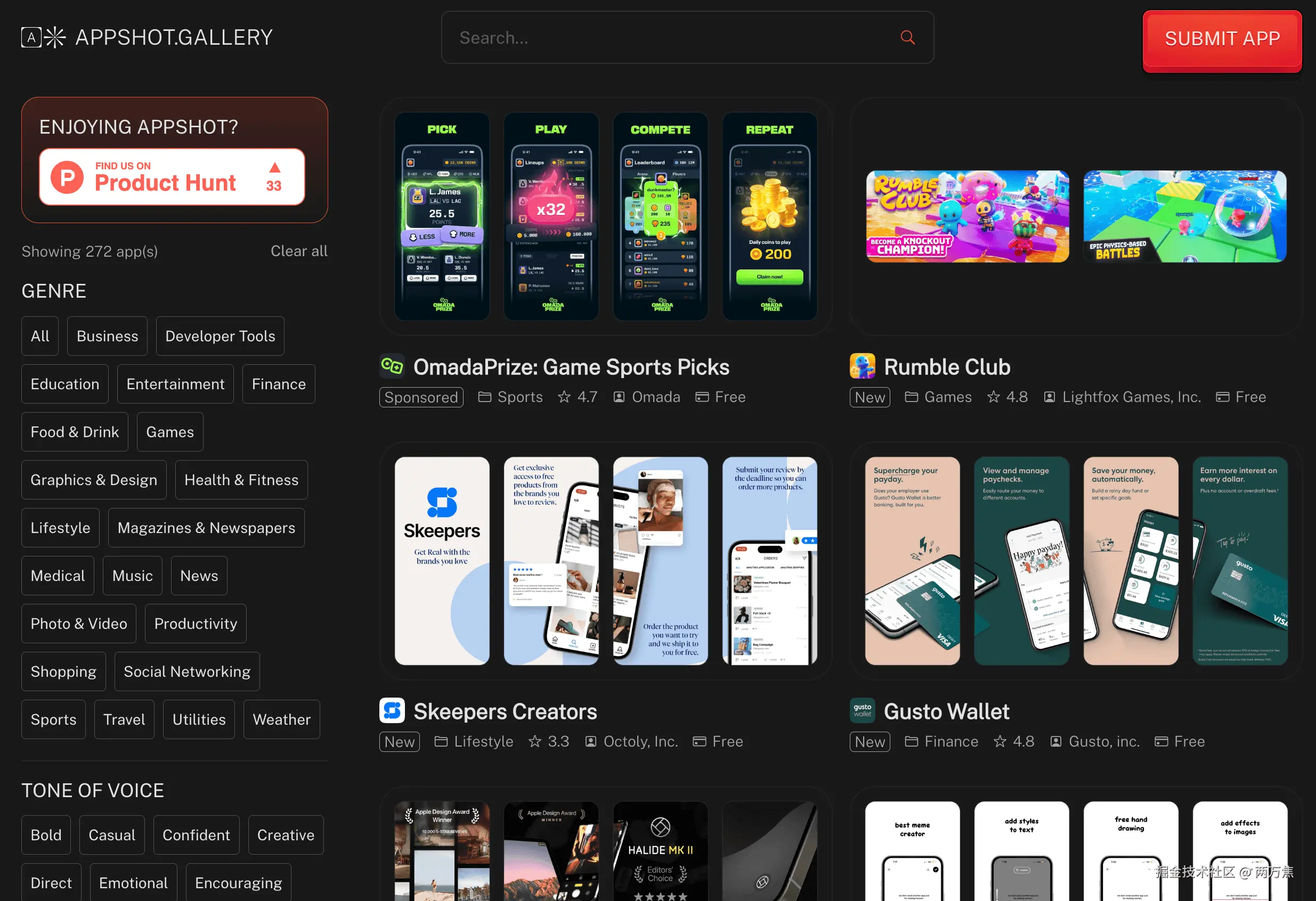 - APPSHOT: 一个收集 app 商店截图的网站,可以在上面找到一些灵感