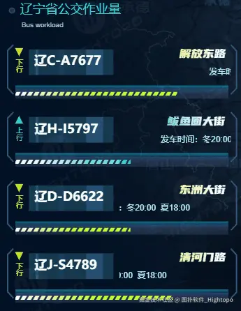 HT 页面引入各城市公交作业量排名板块,能动态呈现省内各城市公交线路的作业量排名。 帮助管理者快速识别高负荷线路, 更有针对性地进行绩效评估。对于排名靠前的线路,管理者可及时调整运营策略,如增加车辆投放或优化发车频率,以有效缓解高峰期压力。