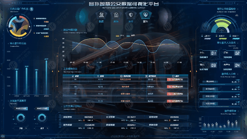 整合各城市不同的工单管理模式,以城市作为整体进行统一管理。结合图扑 HT 可视化平台,接入工单趋势、巡检计划、收费、质量、工程、安全、满意度等关键指标,为提高公交服务水平提供了强有力的决策支撑。取代了传统的人员汇报和反馈机制,通过与现场智能化物联网设备联动,实现在二三维场景内固定点位上的新工单提示。