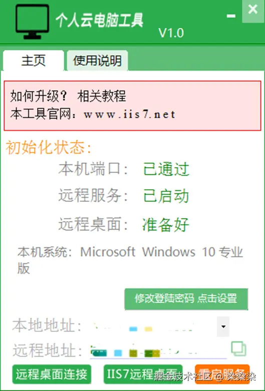首先,您需要访问电脑A下载“个人云电脑工具”,然后打开个人云电脑,得到远程地址,如图所示: