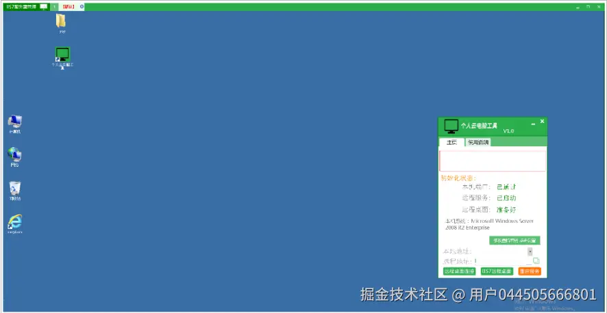 那我们怎么使用这个工具呢? 首先我们的远程电脑安装“个人云电脑工具”之后,它会自动生成一个远程地址,如下图所示: