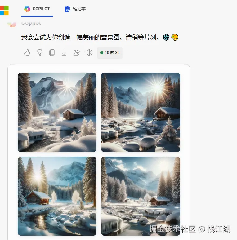 New Bing 集成了GPT4与 Dall-E 3。GPT4就不用提了并且是免费使用的,Dall-E 3 是一种强大的图像生成模型,可以根据文本描述生成逼真的图像。
