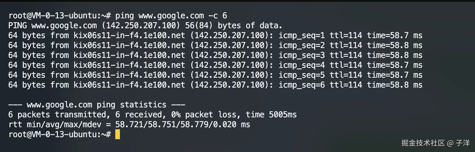 连接上服务器后,运行以下命令测试外网访问能力: