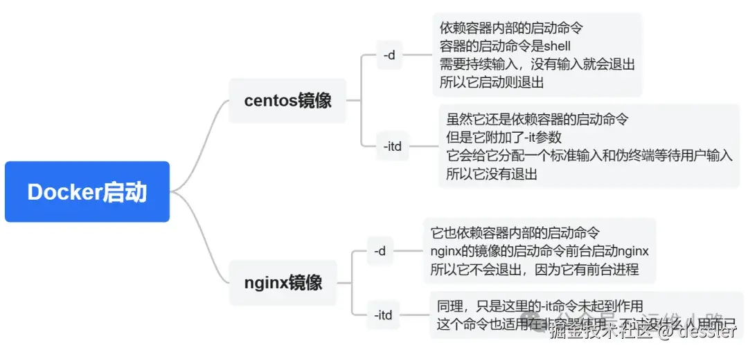可以看到无论我们无论是使用-itd 还是-d 它都可以按照我们预期的方式在后台持续运行,这个是为什么呢?