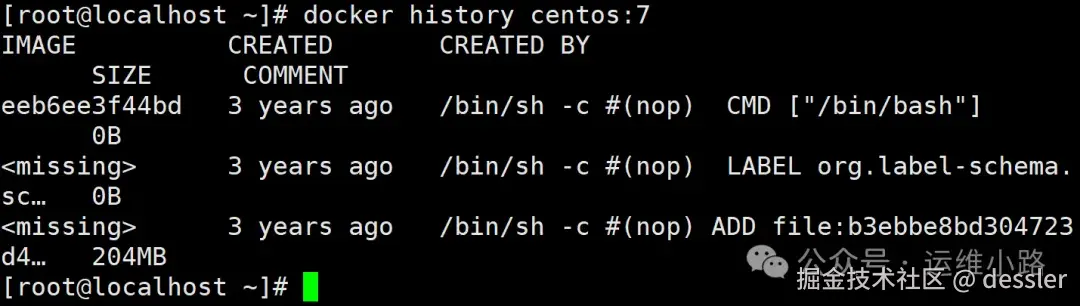 下面我们讲通过例子来讲解这个问题,这个镜像官方的centos7的镜像,只有3层。