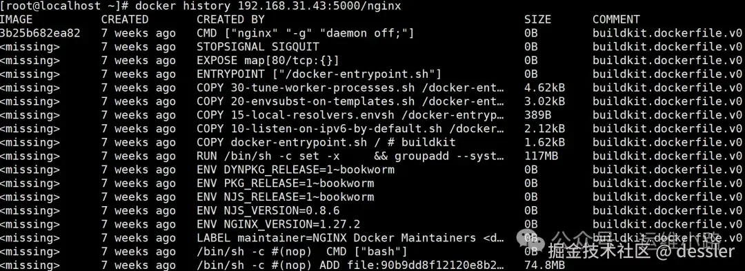 [root@localhost ~]# docker run -d 192.168.31.43:5000/nginx