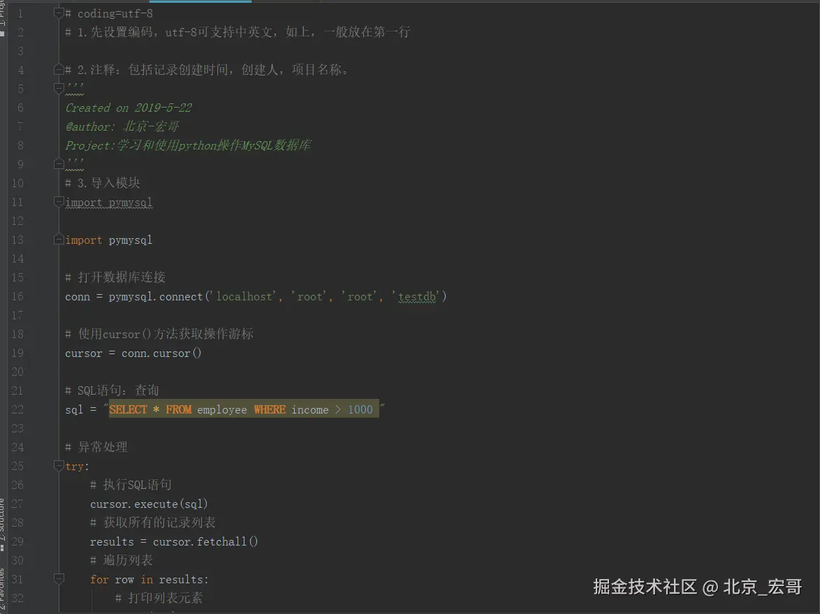 PyMySQL 遵循 Python 数据库 API v2.0 规范,并包含了 pure-Python MySQL 客户端库。
