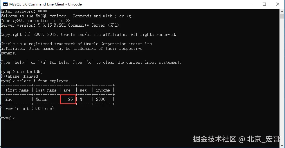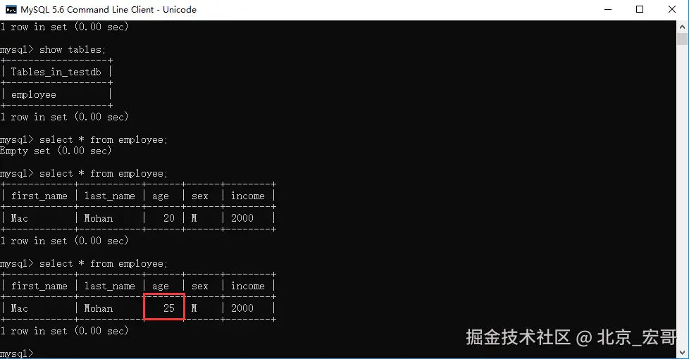 4、查询age变更到25了没有
