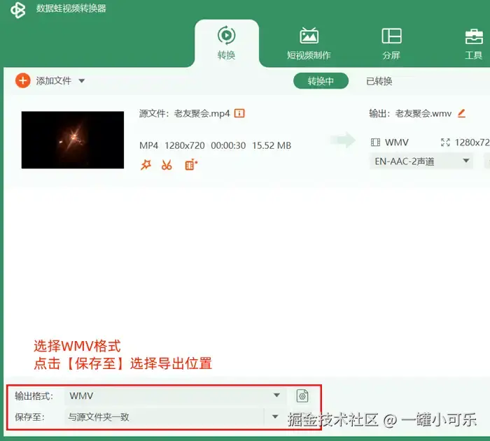 步骤2:在输出设置中,选择WMV格式,然后点击【开始】按钮,等待转换完成。