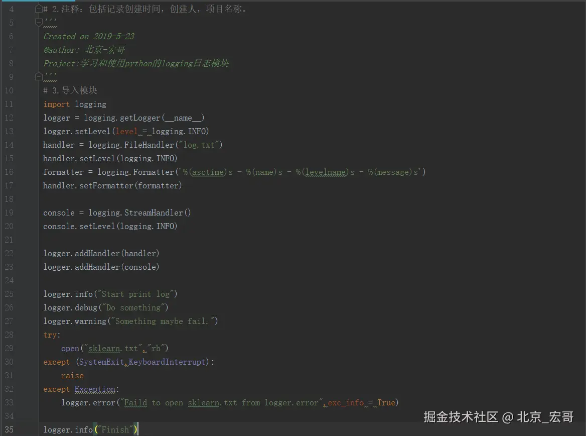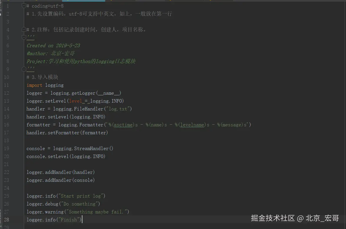 logging模块与log4j的机制是一样的,只是具体的实现细节不同。模块提供logger,handler,filter,formatter。